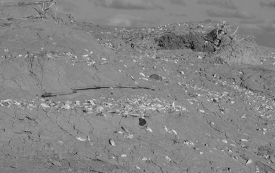Conchero en la Patagonia argentina (excavación arqueológica) cerca de Punta Arenas