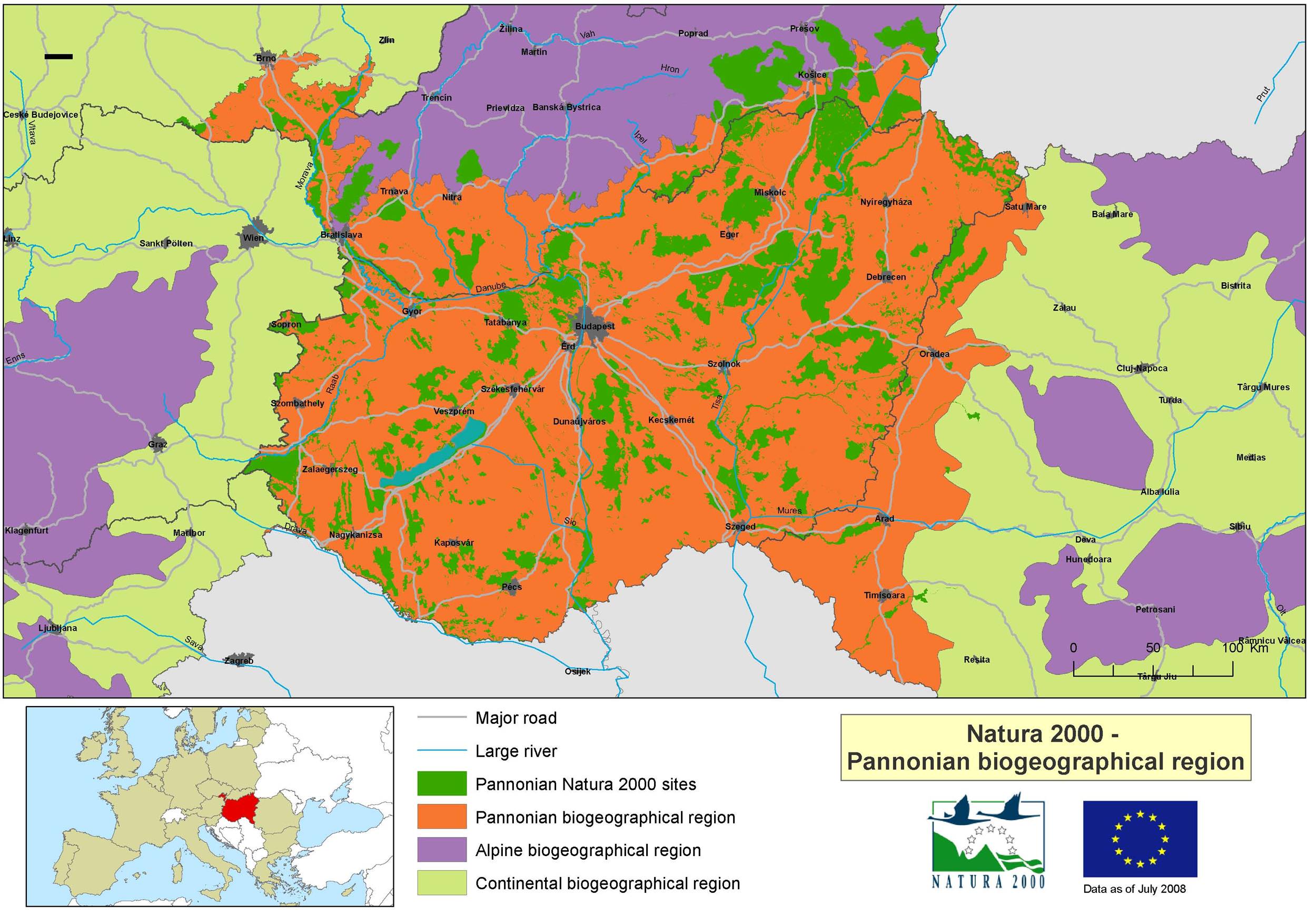 (…) planicies de la cuenca del Danubio, en el centro-este de Europa. Territorio que por la originalidad de su flora y el carácter único de su vegetación recibe el nombre de región Panónica. Este nombre hace referencia a la provincia romana de Pannonia, con la que a grandes rasgos coincide esta región natural.