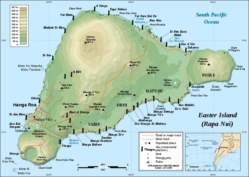 Mapa de Rapa Nui o Isla de Pasua. Fuente: Wikipedia