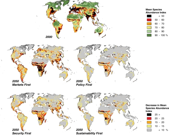 Pérdida de Biodiversidad en el Mundo hasta 2050. Fuente: UNEP