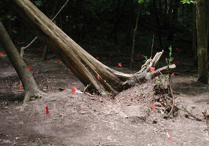 Ya hemos comentado en algunos post anteriores (ver lista abajo) como los bosques fabrican sus suelos y estos, a su vez, condicionan la estructura y dinámica del bosque. Las interacciones mutuas de los organismos entre sí, y de estos con el suelo son bastante variadas. No obstante, dos factores bióticos parecen afectar en gran medida de la estructura de los suelos forestales. Por un lado, la composición de las especies arbóreas determina la naturaleza de los restos vegetales que deben ser reciclados por el suelo, y como corolario condicionan sus propiedades tróficas, y químicas. Sin embargo, otro proceso de suma importancia viene determinado por lo que se denominan mecanismos lito-mecánicos. Hablamos de la muerte y caída de los árboles que generan unas micro-topografía ondulada del piso forestal, a la par que desempeñan un importante rol a la hora de incrementar la heterogeneidad de hábitats, sin olvidarnos que, una vez más colaboran en la teselación de la estructura trófica del medio edáfico. Un bosque natural se encuentra compuesto por un ensamblaje de especies vivas y muertas, ya sea mediante enfermedades, caída de rayos, efecto de vientos huracanados, incendios, etc. En este post nos centraremos principalmente en los aspectos micro-topográficos que la dinámica de los ecosistemas forestales genera, analizando de pasada algunas repercusiones físico-químicas.