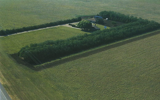 Rancho en los altos llanos de Texas con cortavientos Fuente: Daily Yonder