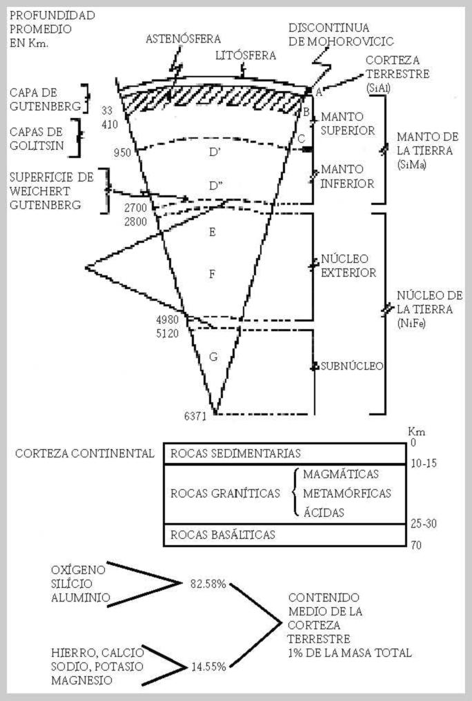 Diagrama 1. Los constituyentes de la Tierra. El cual se divide en dos grandes regiones del centro hacia el Pacífico Epimesozoico y hacia el Atlántico Epihercianas, aunque esta última se originó en el Paleozoico superior. En las costas del Golfo de México y el Caribe abundan los materiales del Pleistoceno y recientes.