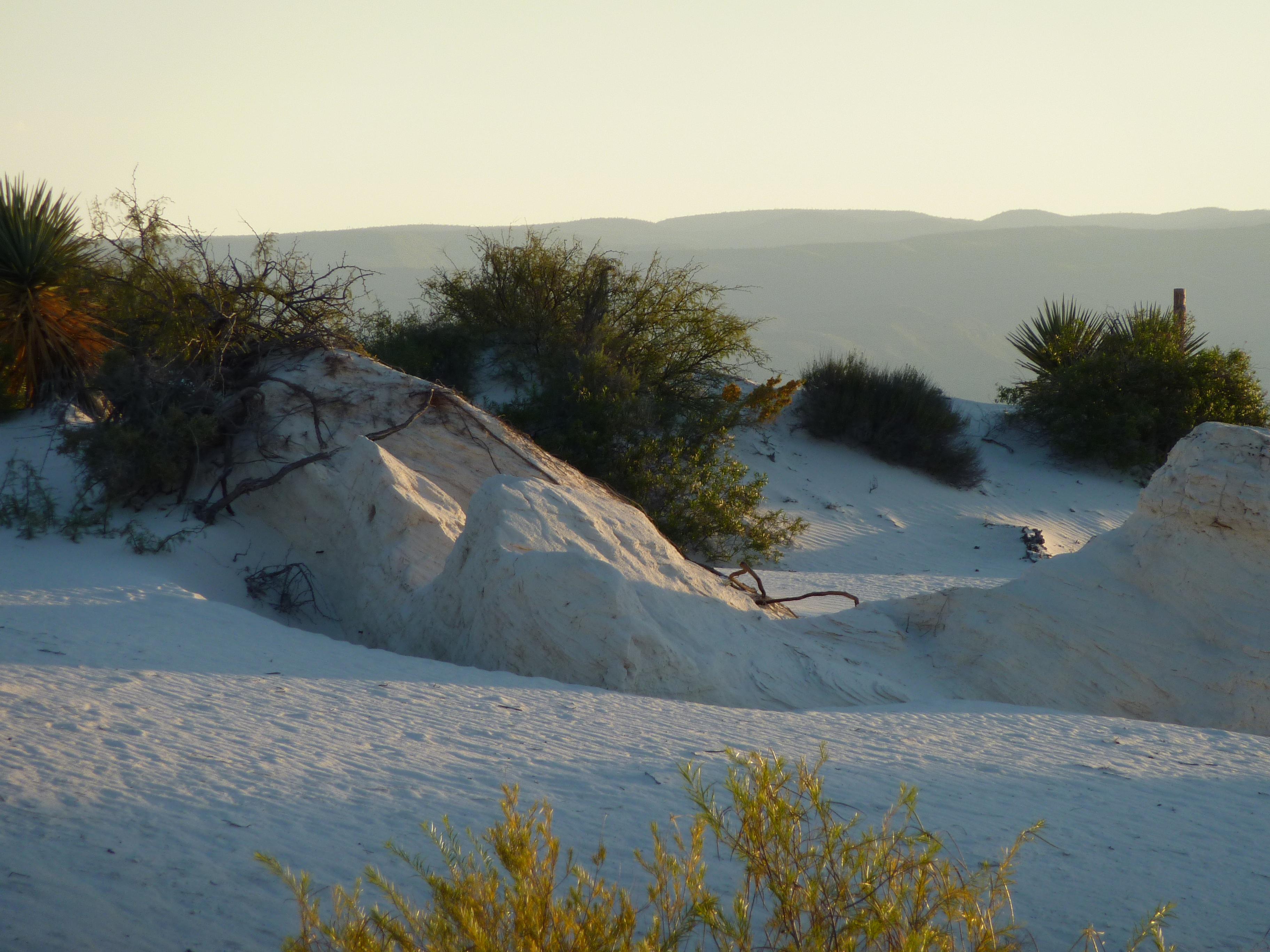 Los campos de dunas de yeso son modernos sistemas eólicos que se desarrollan bajo clima húmedo (o al menos sin aridez acusada) en los que tal acumulación es controlada por una capa de agua subterránea cercana a la superficie, la cual promueve la temprana cementación del material dunar. Al comienzo de de cementación, en los espacios interdunares y, en menor grado, sobre ellas reduce la cantidad de arena disponible para ser transportada, ralentizando las tasas de migración de las dunas. Basado en una tasa de emigración promedio de 2 m/año, el tiempo necesario con vistas a que una duna en White Sands emigre a una cierta distancia resulta ser de aproximadamente 6500 años. Esta cifra coincide también con otras estimaciones acerca del inicio de la génesis de estos sistemas, hace aproximadamente 7000 años, e indica que White Sands probablemente evolucionó como un sistema eólico húmedo.