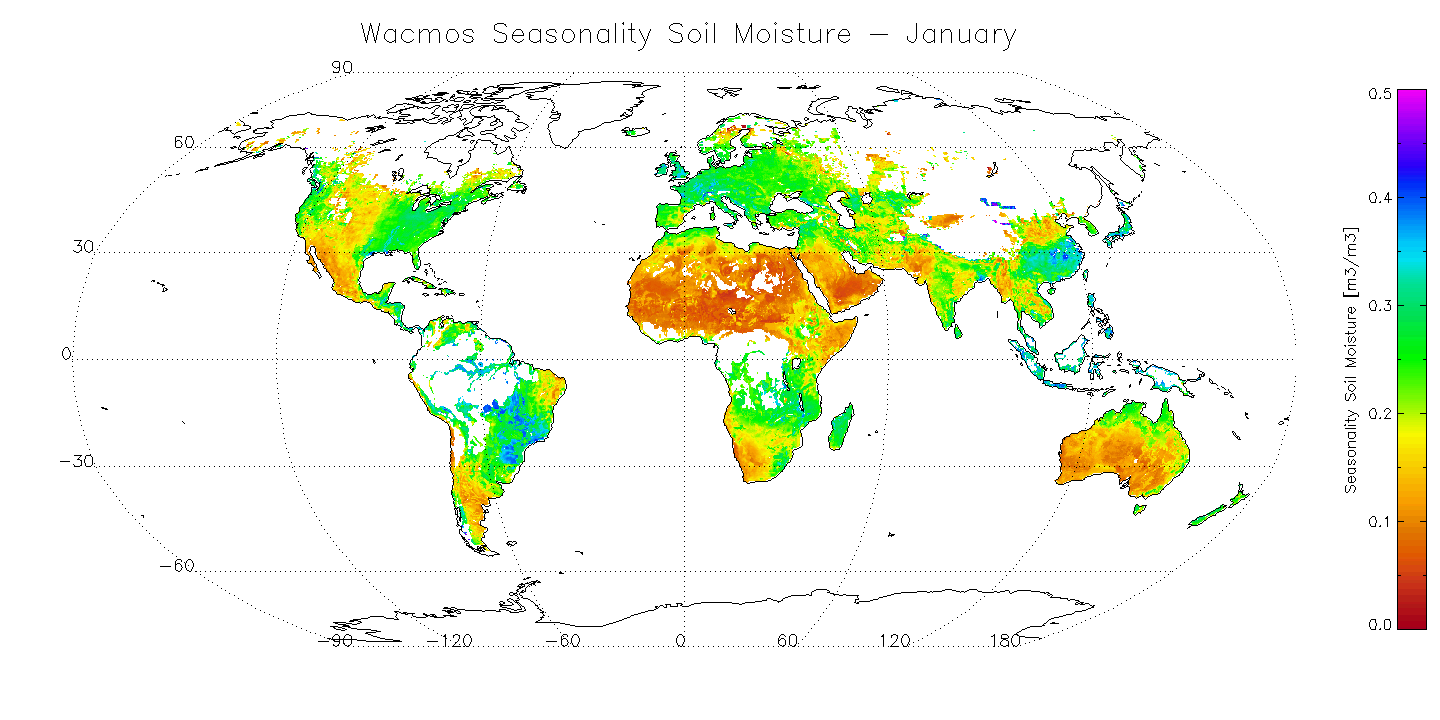 Variación de la humedad del suelo estacional a escala Global. Fuente: ESA CCI Soil Moisture website