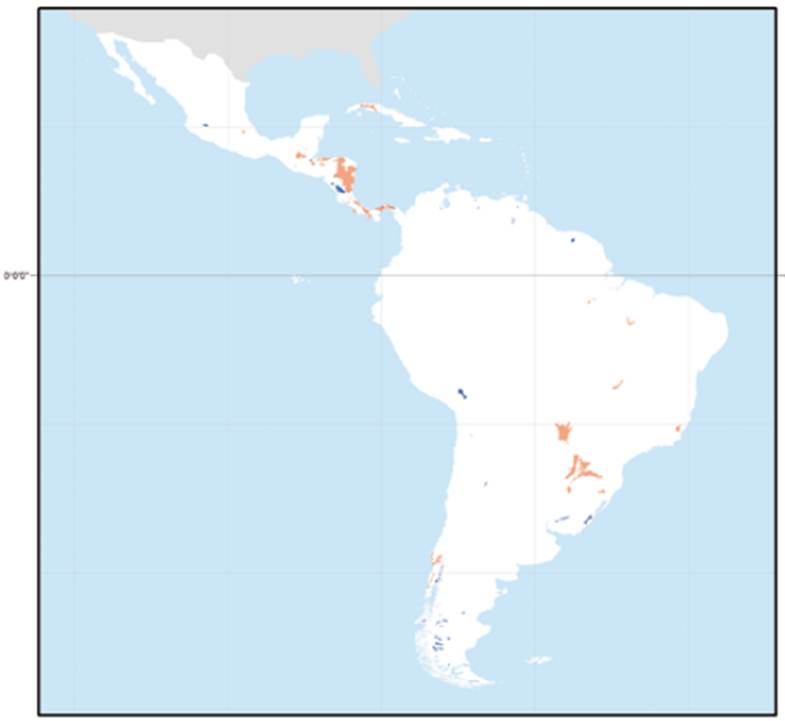 Mapa de Distribución de los Nitisoles (Nitosoles) en Latinoamérica. Fuente: Buró Europeo de Suelos
