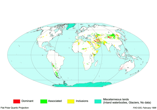 Mapa de Suelos de los Solonchaks. Fuente: FAO