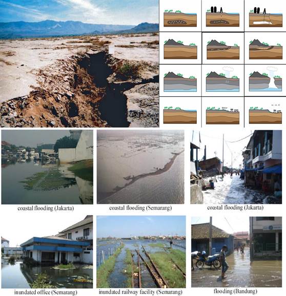 Subsidencias del terreno y sus diversas causas; Fuente. Colaje imágenes Google