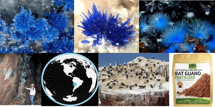 En un post previo ya hablé de la importancia de ese formidable fertilizante natural al que en España se denomina Nitrato de Chile (Las Aves y los Suelos (Suelos Ornitogénico): El valor del Guano). Por casualidad, repasando otras notas de prensa topé con una que mostraba un mineral precioso, de nombre estrambótico y el vocablo guano. Me despertó la curiosidad, indagué …. y esta vez (¡uno de esos casos excepcionales que me ocurren de vez en cuando!) causó mi regocijo. Dado que tenéis material más que de sobra como para entender el valor de lo descubierto, me limitaré a elaborar unos breves comentarios.
