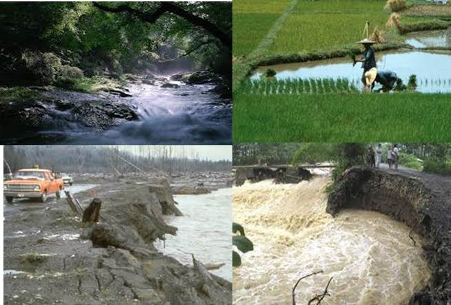 Erosión de los márgenes fluviales, contaminación y degradación de los ecosistemas fluviales y la calidad de las Guas: Fuente: Colaje Imágenes Google.