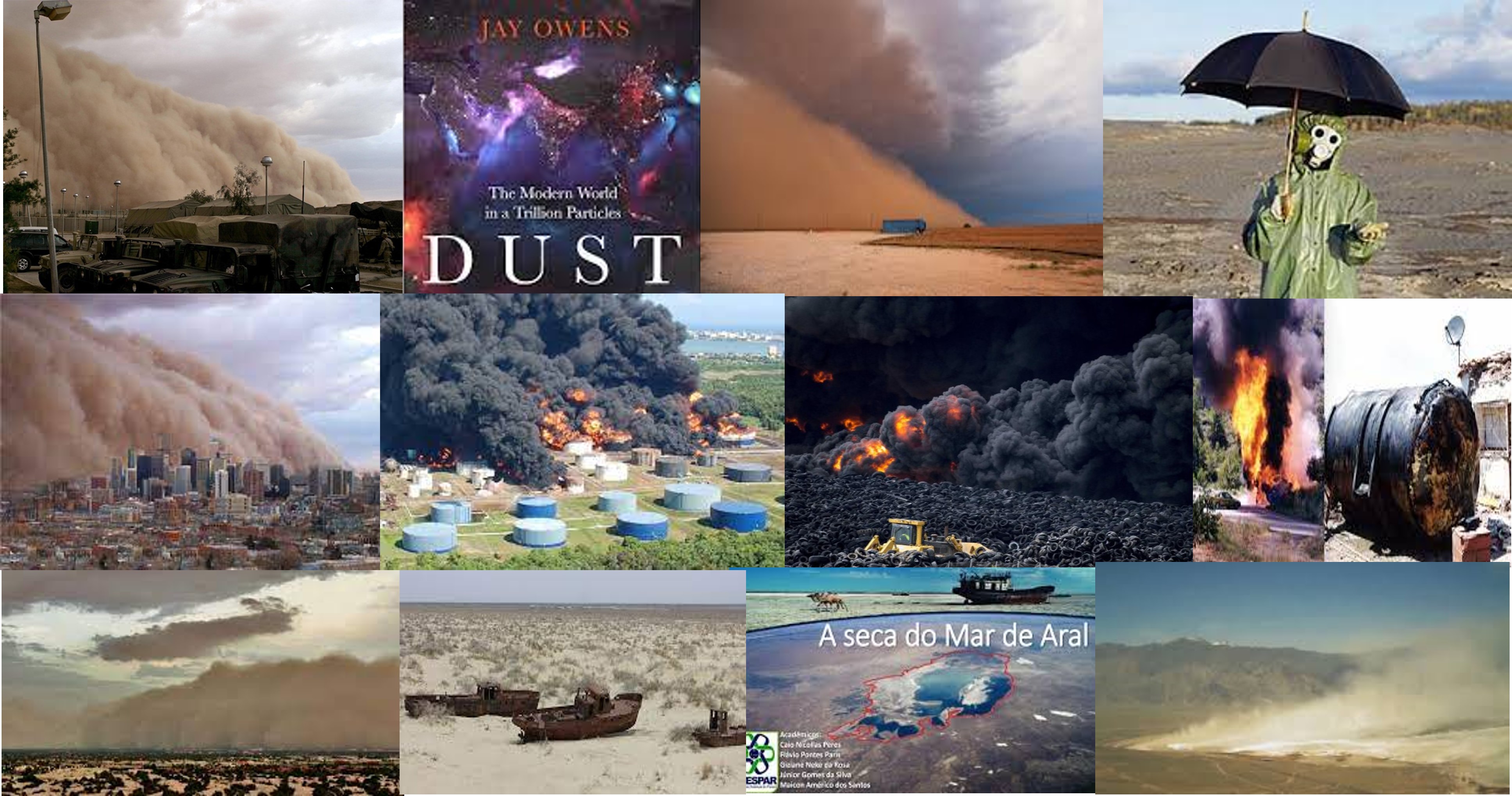 Obviamente, el elemento común es el polvo que hemos lanzado y/o acelerado los humanos a la atmósfera y que propiciaron desastres descomunales. La autora de la reseña añade otros que echaba en faltaen el libro publicado, por lo que el resultado de la síntesis es aún más dramático, dando fe de la Bobalización de la especie humana, como en este post, relacionado, como no con el polvo. Polvos radioactivos, polvos que obturen nuestros sistemas respiratorios, polvos que envenenan, polvos generados por las extracciones mineras, polvos derivados de zonas aridificadas por el mal manejo de suelos, polvos de los lechos de lagos y mares interiores, lanzados al viento al destacarse por gravísimos errores en la búsqueda de más alimentos, polvos de neumáticos y mucho más. El suelo, aunque no se mente, se encuentra afectado de muchísimas formas. Tan solo hace falta que lo lectores las recuerden.