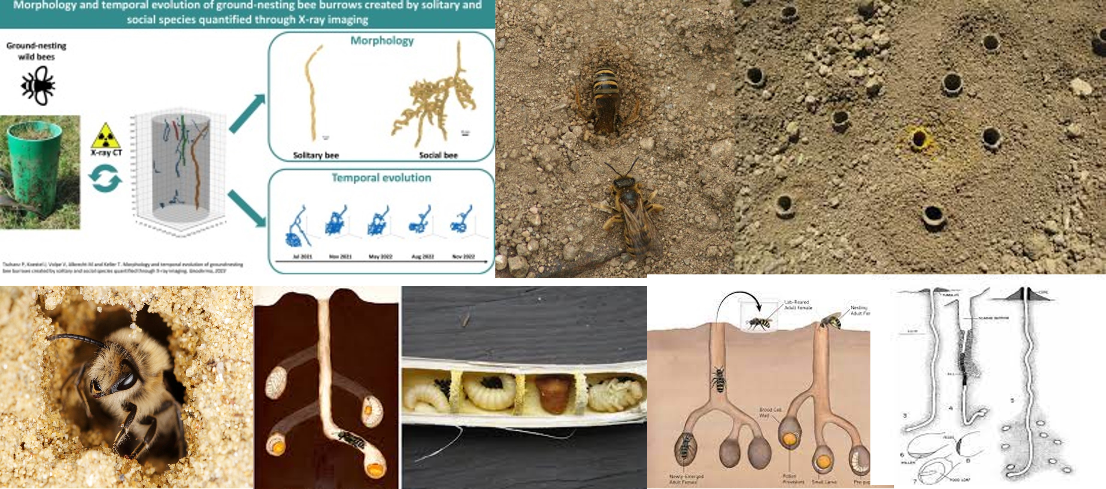 Morfología y evolución temporal de madrigueras de abejas que anidan en el suelo creadas por especies solitarias y sociales cuantificadas a través de imágenes de rayos X