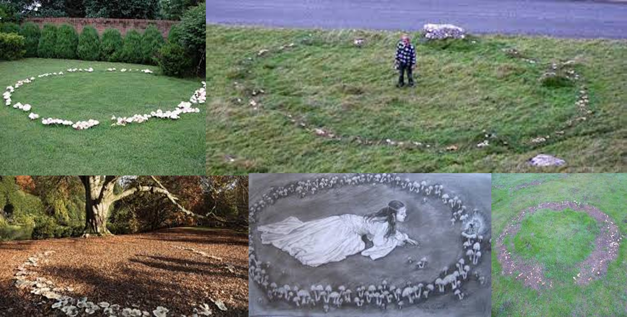 Un corro de brujas es un anillo o sector anular formado por el crecimiento radial del micelio de un hongo. Suele manifestarse por bandas de distinto color en la hierba, especialmente cuando crecen en praderas. En bosques, su presencia se detecta cuando el hongo fructifica. Su tamaño suele ser reducido, de unos decímetros a unos pocos metros.1 (….) Cuando los hongos que forman corros de brujas crecen en praderas, su crecimiento da lugar a unas bandas concéntricas de hierba amarilleada en la periferia y mucho más verde en el interior inmediato. Esto se debe a que el micelio vivo compite con la hierba por los nutrientes, causando que la hierba se agoste. Cuando el micelio muere y se descompone, la hierba aprovecha el exceso de nutrientes liberados. Esto se repite año tras año mientras el corro se ensancha. Estos anillos ocupaban un lugar importante en las mitologías europeas, como la celta o la germánica, en las que se sostenía que eran puertas a reinos feéricos, o lugares donde habían bailado hadas, duendes o brujas.