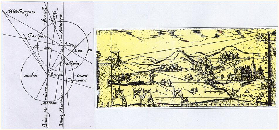Figura 2.- Método de la triangulación de Gemma Frisius. 1533