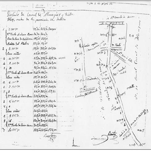 Actas y trabajos topográficos de campo realizados con una brújula sexagesimal, año de 1877. Cañada Real Soriana. Almaguer (Toledo) e Interpretación de los datos.