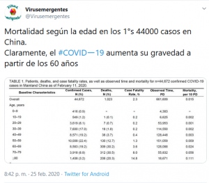 Ya lo tenemos encima, el nuevo coronavirus denominado SARSCoV-2 (causante de la enfermedad denominada COVID-19) ha cruzado fronteras, atravesado continentes y se acerca rápidamente a la categoría de pandemia (recordemos: pandemia no necesariamente implica “enfermedad grave” sino enfermedad -grave o leve- que se extiende por amplios territorios y afecta a un alto porcentaje de la población). En la actual situación de exceso de información –incluyendo dosis preocupantes de desinformación- desde aquí no queremos desde luego interferir con la información fiable que dan las fuentes oficiales, que recomendamos seguir y que indicamos a continuación: