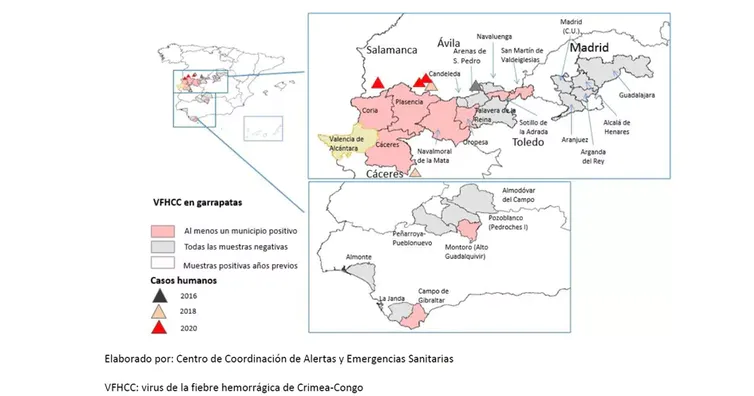 La fiebre hemorrágica de Crimea-Congo, causada por un virus (CCHFV) que se transmite por garrapatas, produjo el año pasado tres casos en España, todos en la provincia de Salamanca. No eran los primeros: hubo dos más en 2018 y otros dos en 2016 (1).