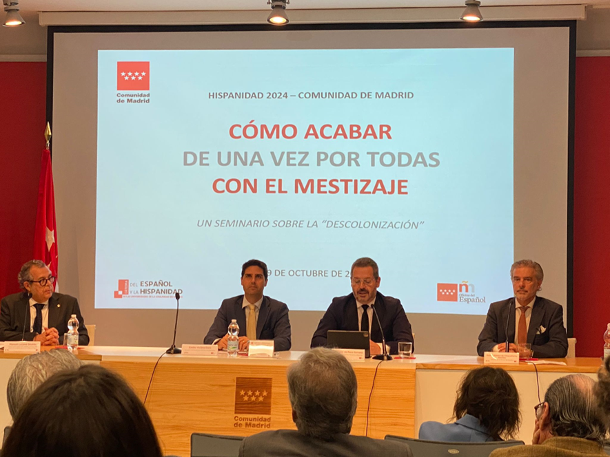 Los días 8 y 9 de octubre de 2024, y en colaboración con la Oficina del Español de la Comunidad de Madrid, la Cátedra del Español y la Hispanidad de las universidades de la Comunidad de Madrid participó en el seminario titulado “¿Cómo acabar con el mestizaje? Un seminario sobre la “descolonización”.”
