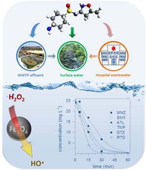 Además de lograr eliminar en medio acuoso un grupo representativo de fármacos empleando un catalizador magnético, los investigadores estudiaron la oxidación de la mezcla de los fármacos en diferentes matrices acuosas reales en las que estos suelen aparecer de forma habitual: efluente de EDAR (Estación depuradora de aguas residuales), agua residual hospitalaria y agua de río.