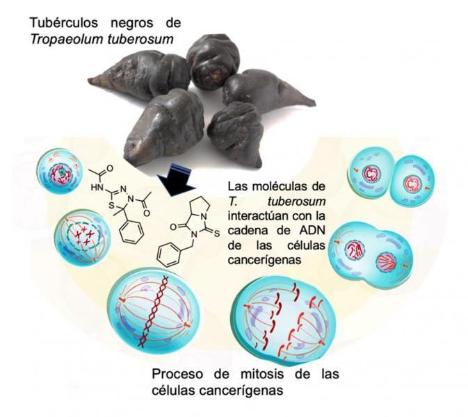 Dentro de las especies vegetales con potencial anticancerígeno, destaca Tropaeolum tuberosum (Mashua). Esta especie crece a altitudes de 3.800 metros sobre el nivel del mar, expuesta a condiciones climáticas extremas como suelos pobres, con un pH ligeramente ácido y exposición a radiación ultravioleta.