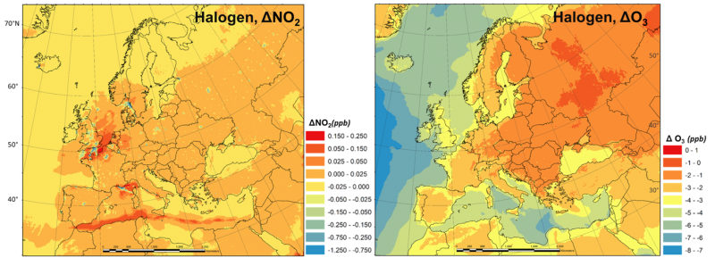 Las principales conclusiones que se derivan del trabajo es que el efecto combinado de los halógenos modifica sustancialmente el balance de radicales en la atmósfera, que determinan cómo la atmósfera procesa las emisiones contaminantes y la tasa de generación de contaminantes secundarios. En algunos puntos de Europa, se observa que la incorporación de la química de los halógenos reduce el número de días que exceden el umbral objetivo de la Unión Europea para la protección de los seres humanos y la vegetación del ozono ambiental. El estudio, no obstante, señala la necesidad de estudiar el impacto de estos compuestos de forma específica para cada localidad ya que su efecto cambia considerablemente en función de la ubicación y nivel de contaminación, siendo particularmente relevante en regiones oceánicas y costeras.