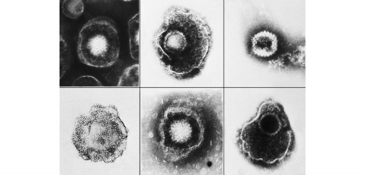 Varios virus de la familia Herpesviridae vistos usando una micrografía electrónica. Entre estos miembros está la varicela-zoster (varicela) y el herpes simple tipo 1 y 2 (HSV-1, HSV-2). / CDC/ E. L. Palmer (PIXABAY)