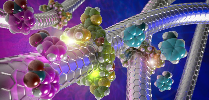 The research group led by Emilio M. Pérez at IMDEA Nanociencia (Madrid) has developed methods for the chemical modification of carbon nanotubes by mechanical bonding, the first example of mechanically interlocked carbon nanotubes (MINTs). This type of compounds are as stable as covalent compounds, but at the same time as respectful of the initial structure as the non-covalent compounds. In this case, imagine a cylindrical advertisement through which the post is threaded: the link is very strong, because we cannot separate the ad without breaking it, but it does not leave holes in the post or in the advertisement. In addition, we can move the ad up and down the length of the pole, or rotate it, to look at it from the angle that suits us best.
