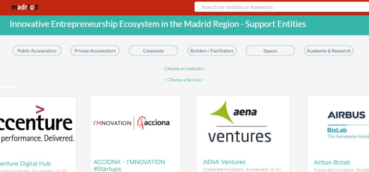 Startup Radar madri+d publica las entidades de apoyo del Ecosistema Emprendedor Innovador de la Comunidad de Madrid 11.03.2021 Las cerca de 150 incubadoras, coworkings, venture builders y company builders incluidas en el buscador constituyen una de las mayores densidades de espacios privados para startups