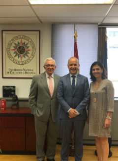 El Director de la Fundación para el Conocimiento madri+d, Jesús Sánchez Martos, visitó ayer, 28 de junio, la UNED acompañado por su Rector en funciones Ricardo Mairal Usón y la Vicerrectora de Ordenación Académica y Calidad, Nuria Carriedo López.