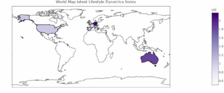 El índice de dinámica de estilo de vida en el mundo. Fuente: Raúl G. Sanchis y José Vicente-Pérez.
