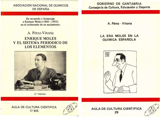 El 18 de abril de 1983 Augusto Pérez-Vitoria, el discípulo más leal de Enrique Moles, atendiendo la invitación para conmemorar el Centenario del nacimiento del insigne químico barcelonés que le había hecho mi padre y maestro, el Prof. Francisco González de Posada, entendía que debía dar una conferencia con un título y un subtítulo desde entonces inseparables: "Enrique Moles y el sistema periódico de los elementos", título con el que se publicaría la conferencia en el nº 17 de la Colección "Aula de Cultura Científica", que había empezado a dirigir en 1981 mi madre y maestra, la Profª Mª Dolores Redondo Alvarado, panorama que se completaría en 1986 con una segunda monografía de Pérez-Vitoria sobre "La Era Moles en la Química española".