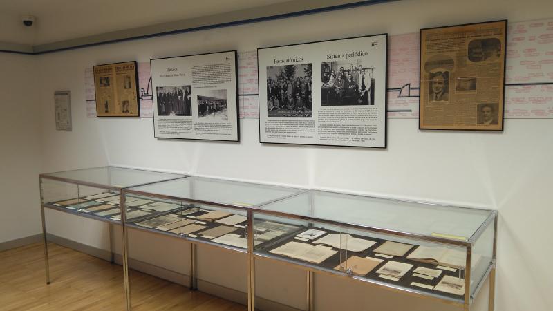 Esta doble vertiente de Moles como Profesor e Investigador es la que vertebra los contenidos y da nombre a esta nueva exposición que hemos preparado desde Amigos de la Cultura Científica sobre este insigne químico español: cinco vitrinas llenas de publicaciones originales de Moles, sólo o con colaboradores, en español, francés o alemán; paneles sobre Moles y la Enseñanza, sobre Pesos atómicos y el Sistema Periódico, sobre Moles y la Investigación; retratos científicos de Moles escritos por Blas Cabrera y Augusto Pérez-Vitoria; Suplementos originales de periódicos de época, plastificados y enmarcados, sobre el Laboratorio de Investigaciones Físicas y sobre el IX Congreso de la Unión Internacional de Química Pura y Aplicada (del que pueden verse en la exposición varios volúmenes de las Actas, programas originales, credenciales como congresistas y reseñas en revistas científicas), etc.