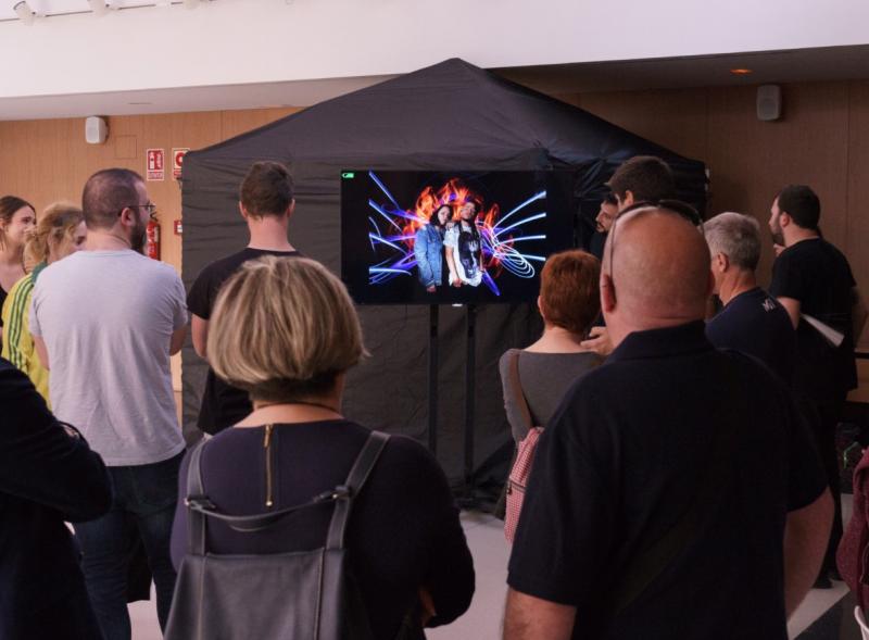 La actividad consiste en un photocall que realizan “grafiteros con leds” y una cámara de fotos.