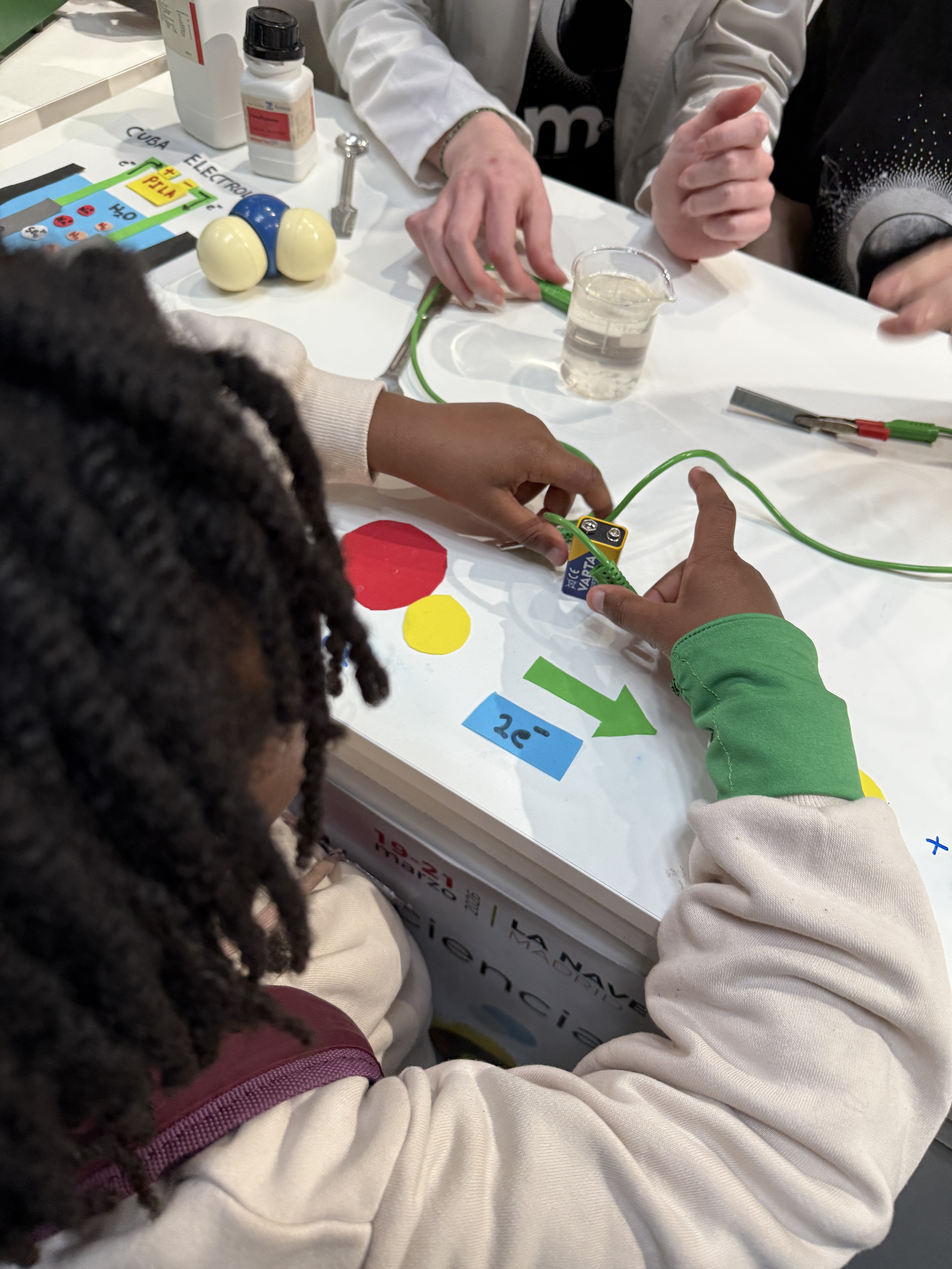 Preguntas de partida: ¿Es posible romper las moléculas de agua usando una pila y grapas? ¿Puede la energía eléctrica dar lugar a una reacción química?