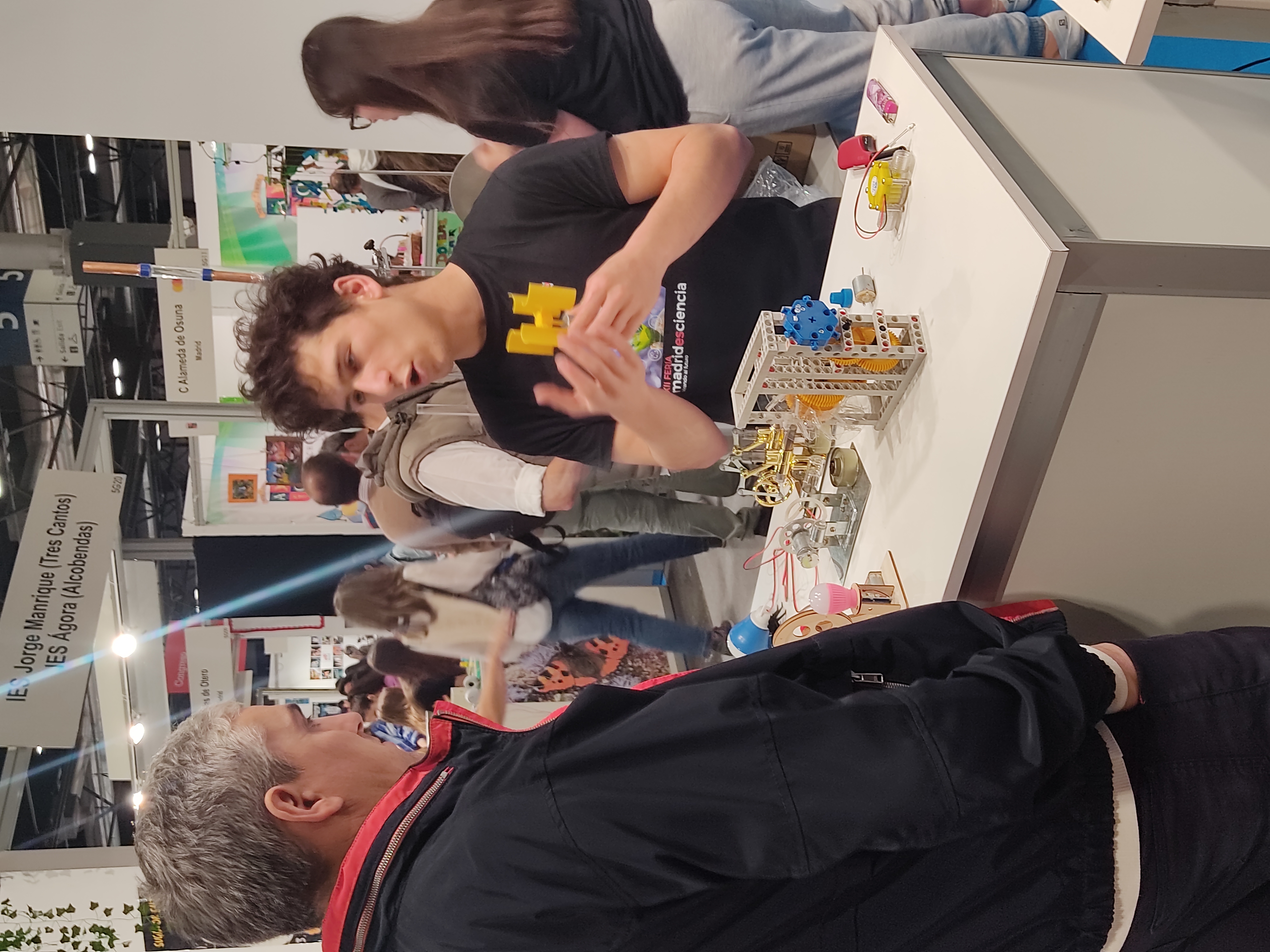 Se muestran en funcionamiento generadores musculares (una dinamo de bicicleta antigua y una linterna sin pilas), eólicos (palas acopladas a una dinamo), hidráulicos (un juguete científico) y térmicos (un motor Stirling). En todos los casos se conecta un led para demostrar la generación de electricidad.