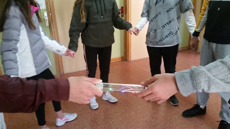Podrás ver cómo la electricidad pasa de unos cuerpos a otros en una cadena humana formada por todos tus amigos.