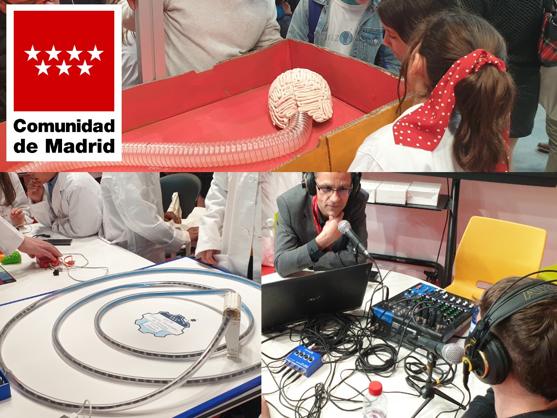 El stand estará dividido en dos zonas, por un lado la zona dedicada a la radio, denominada "Voces del aula" por donde pasarán distintos colegios e institutos públicos, realizando entrevistas, debates, podcast,... La otra zona, está dedicada a proyectos STEM. Pasarán diferentes colegios e institutos públicos, mostrando su trabajos e invitando a los visitantes a participar.
