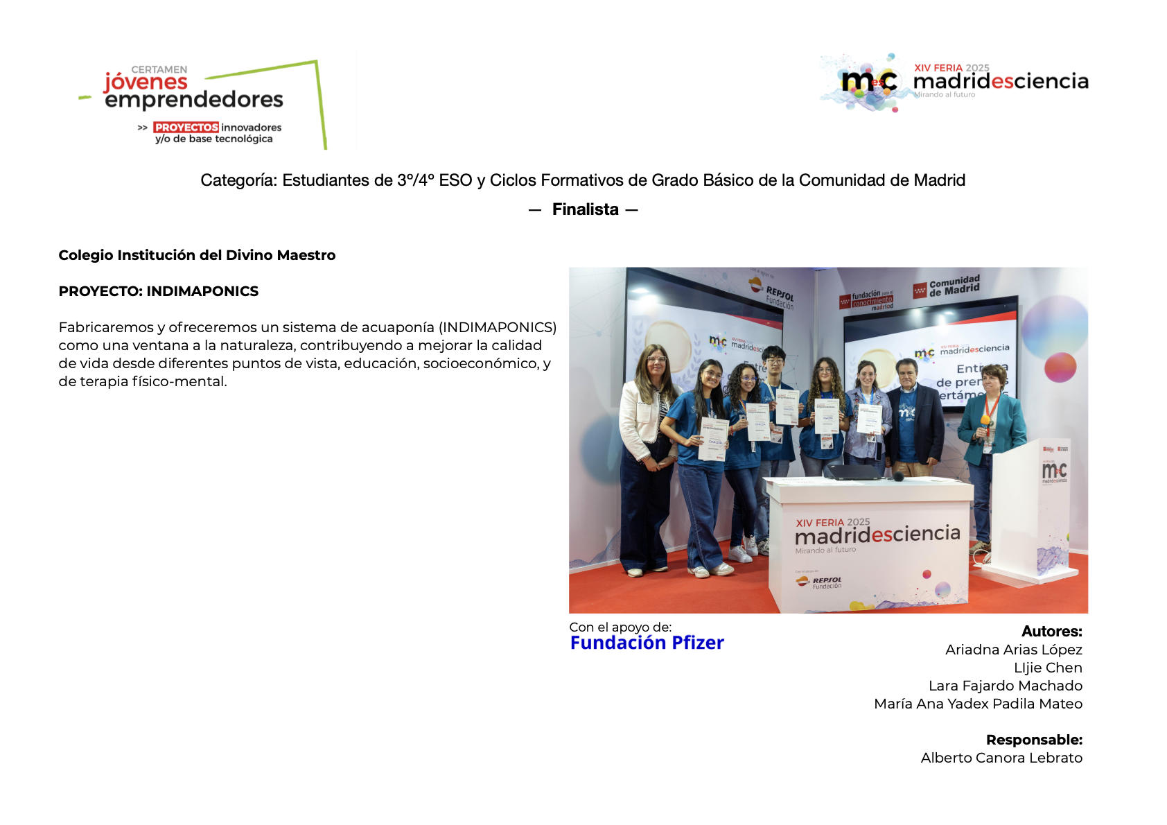 PROYECTOS FINALISTAS en la categoría: Estudiantes de Bachillerato y ciclos formativos de Grado Medio de la Comunidad de Madrid-1