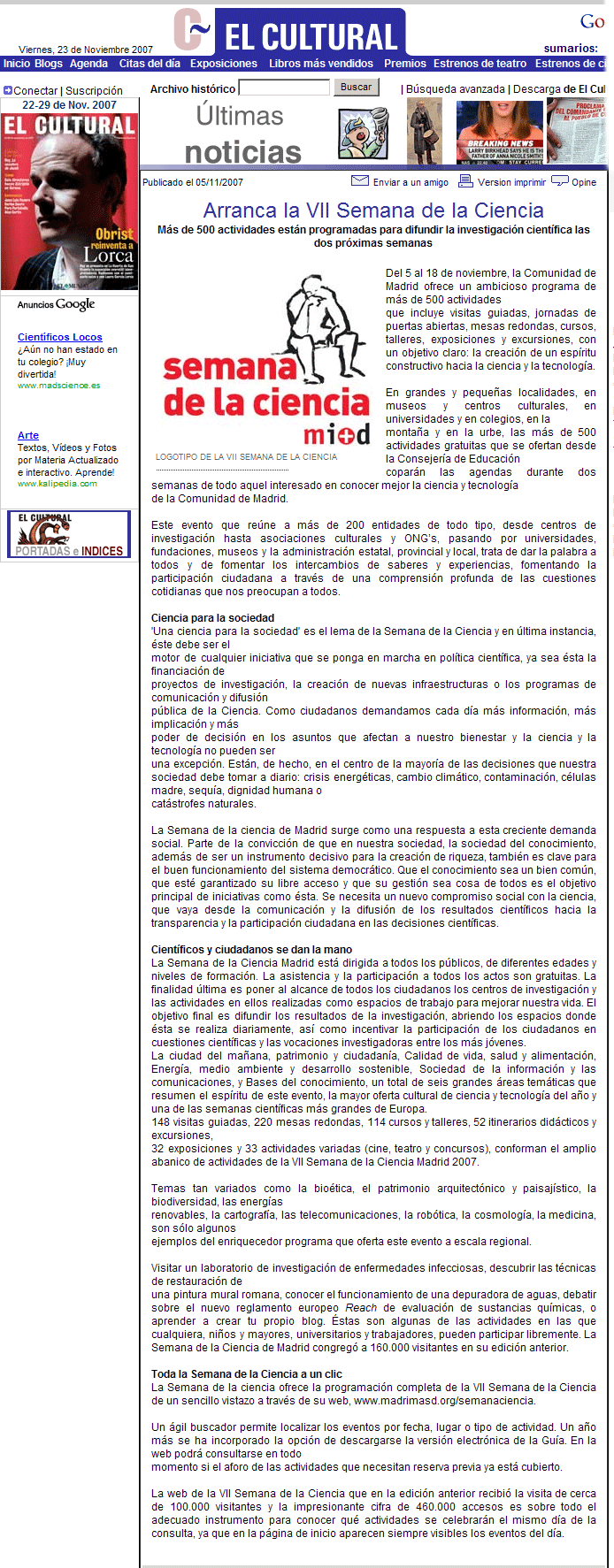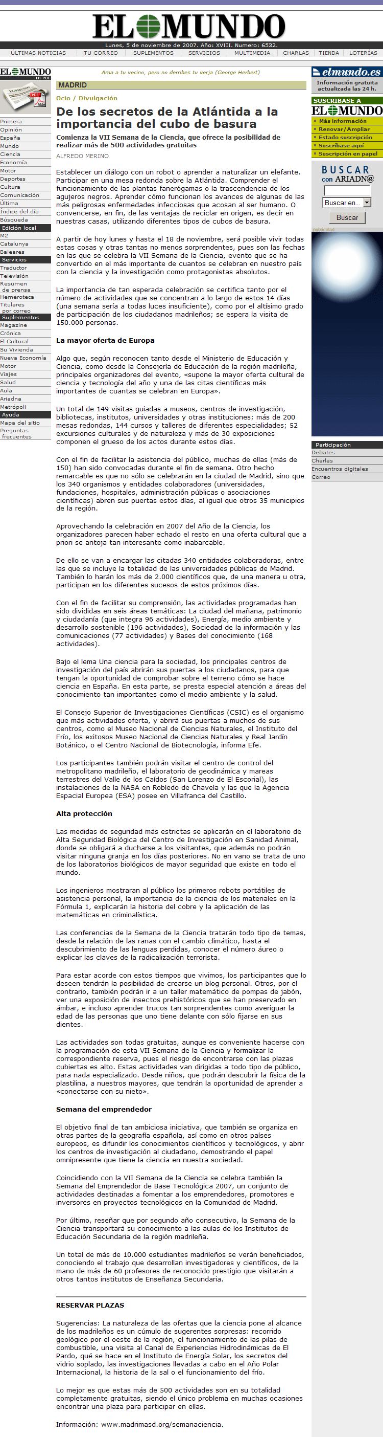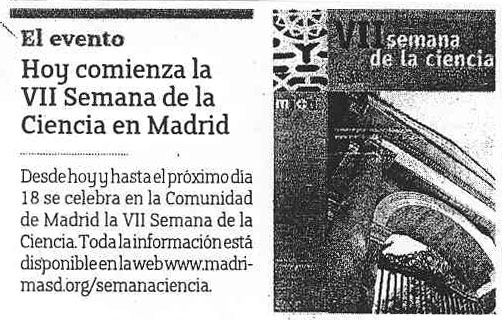 Desde hoy y hasta el próximo día 18 se celebrará en la Comunidad de Madrid la VII Semana de la Ciencia.