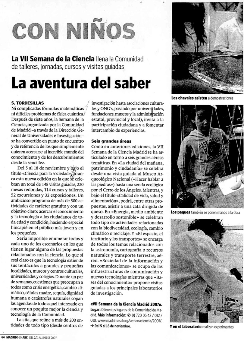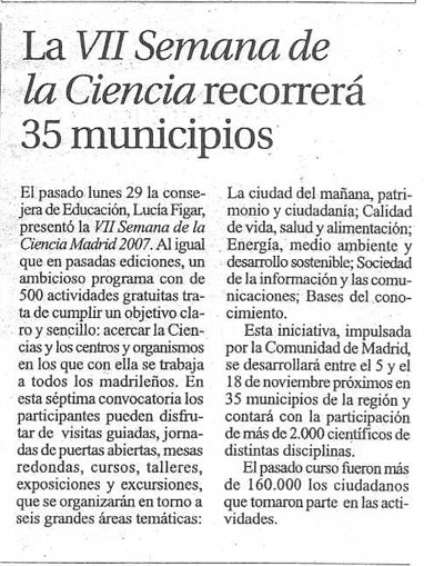 El pasado lunes 29 la consejera de Educación, Lucía Figar, presento la VII Semana de la Ciencia Madrid 2007.