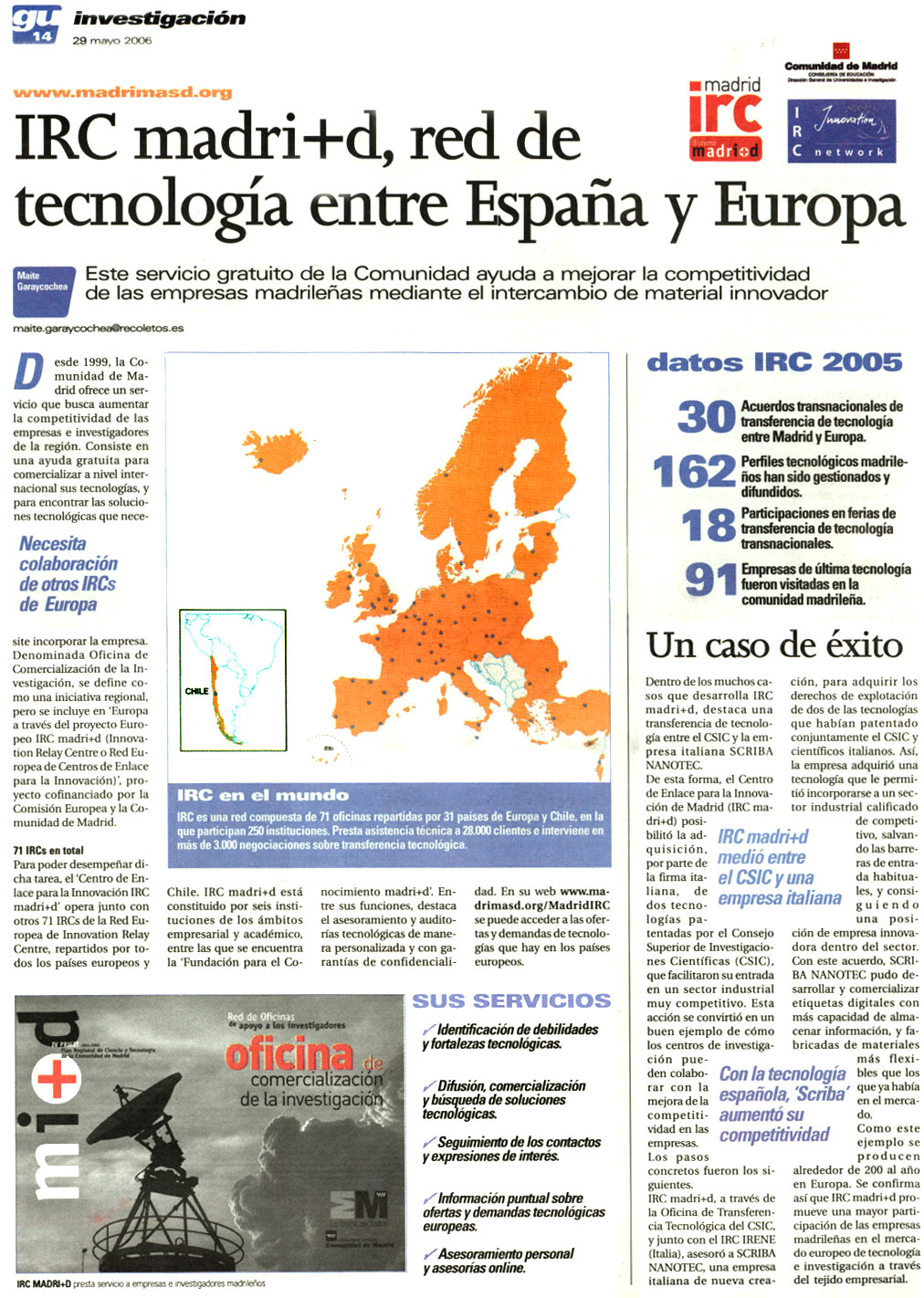 Este servicio gratuito auda a mejorar la competitividad de las empresas madrileñas mediante el intercambio de material innovador