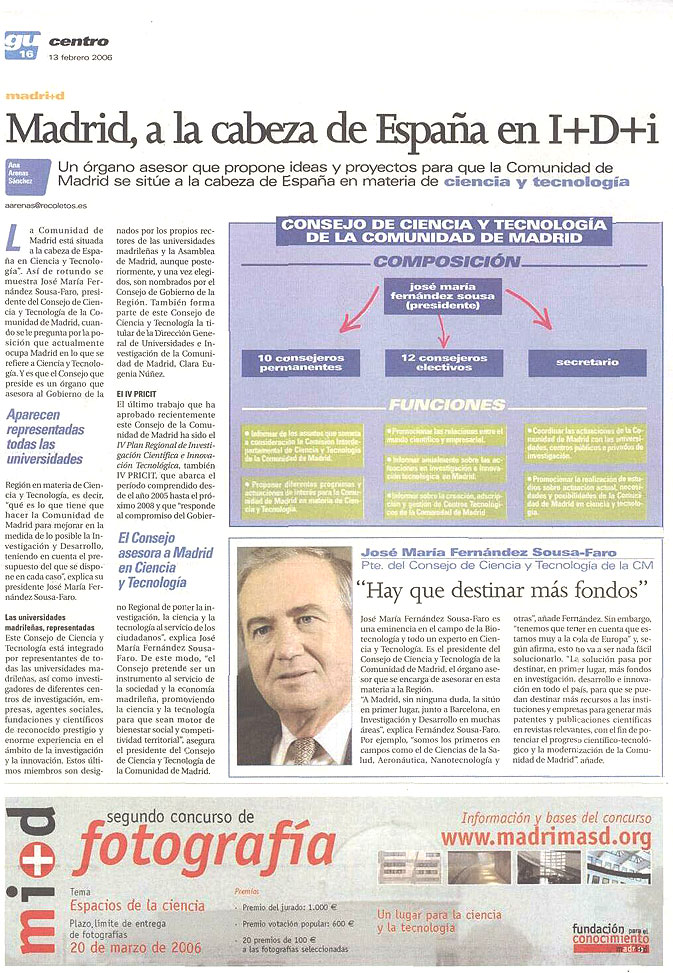 Un órgano asesor que propone ideas y proyectos para que la Comunidad de Madrid se sitúe a la cabeza de España en materia de ciencia y tecnología.