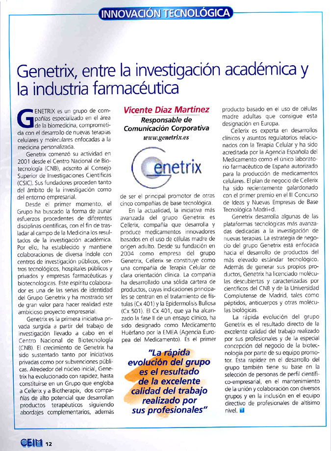Genetrix es un grupo de compañías especializado en el área de la biomedicina, comprometida con el desarrollo de nuevas terapias celulares y moleculares enfocadas a la medicina personalizada.