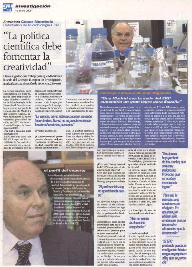 Entrevista a Cesar Nombela (Catedrático de Microbiología UCM). El investigador, que trabaja para que Madrid sea la sede de Consejo Europeo de Investigación, analiza la actual situación de la ciencia.