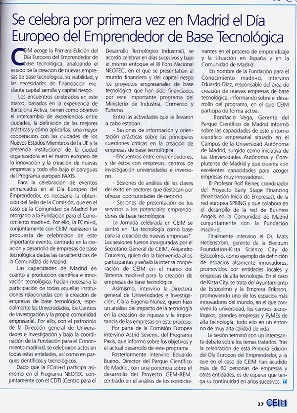 La Dirección General de Universidades e Investigación de la Comunidad de Madrid, DGUI, en su apuesta por la creación de empresas de base tecnológica lanzó, a traves de la Fundación para el Conicimiento madri+d, el II Concurso de Ideas para Spin-off de investigadores madri+d.