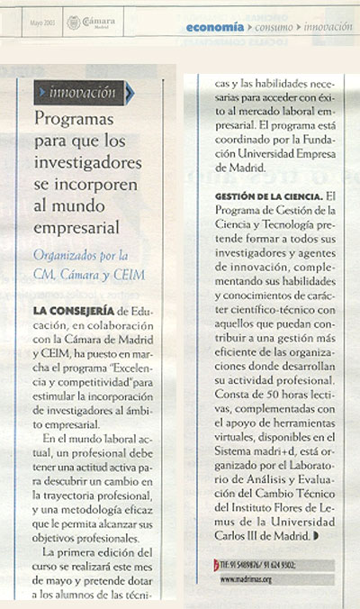 La Consejería de Educación, en colaboración con la Cámara de Madrid y CEIM, ha puesto en marcha el programa Excelencia y competitividad para estimunlar la incorporación de investigadores al ámbito empresarial.