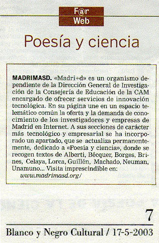 madri+d incorpora a sus secciones de carácter tecnológico y empresarial un apartado, que se actualiza permanentemente, dedicado a Poesía y ciencia.