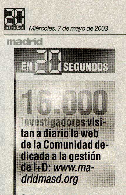16.000 investigadores visitan a diario la web de la Comunidad de Madrid dedicada a la gestión de I+D.