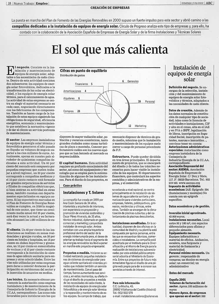 La puesta en marcha del Plan de Fomento de las Energías Renovables en 2000 supuso un fuerte impulso para este sector y abrió camino a las compañías dedicadas a la instalación de equipos de energía solar.
