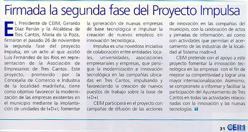 Ceim participará en el proyecto con actividades que permitan el acercamiento de las industrias de Tres Cantos al Sistema madri+d.